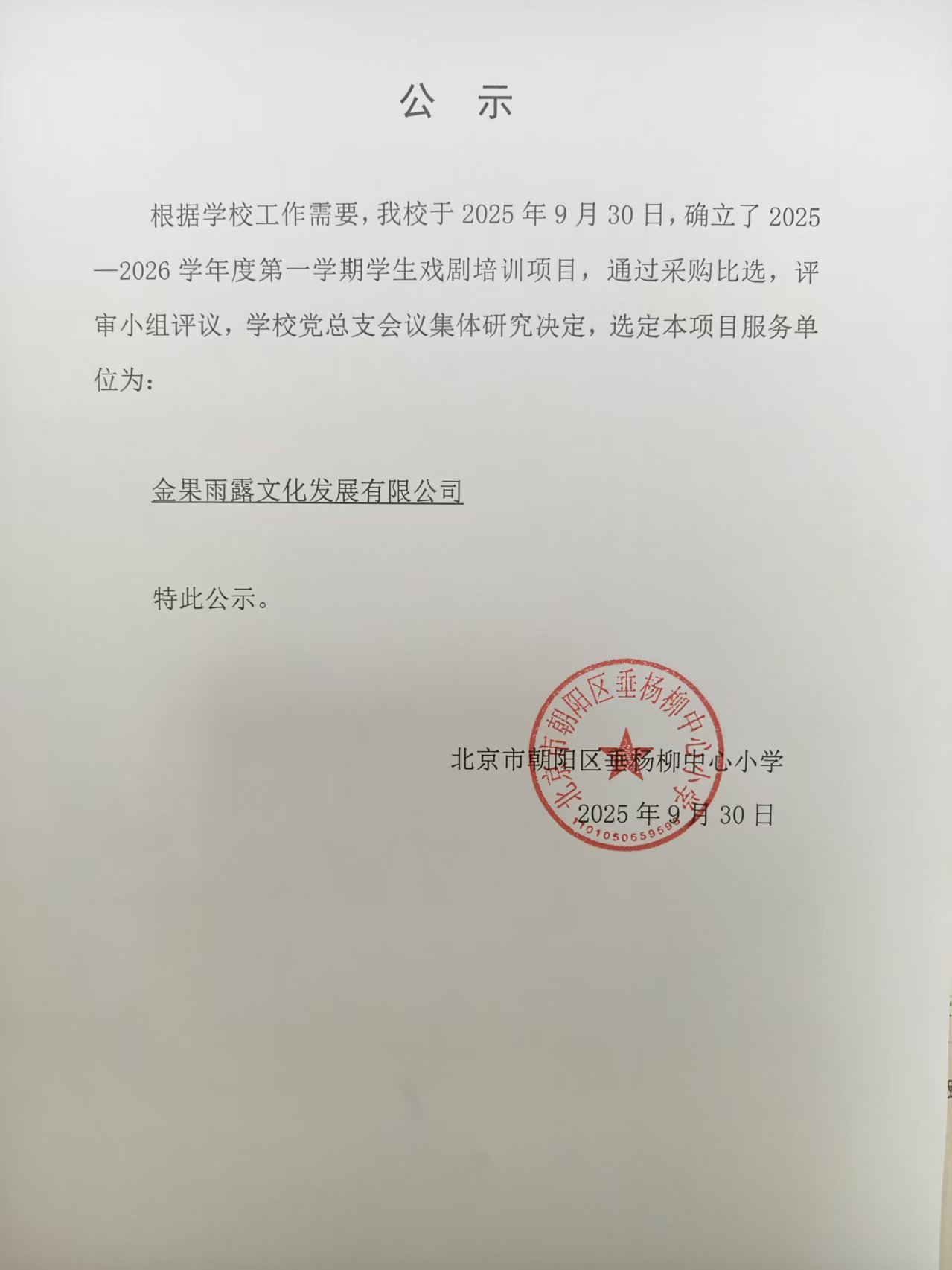 北京市朝阳区垂杨柳中心小学学生戏剧培训项目公示