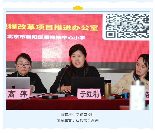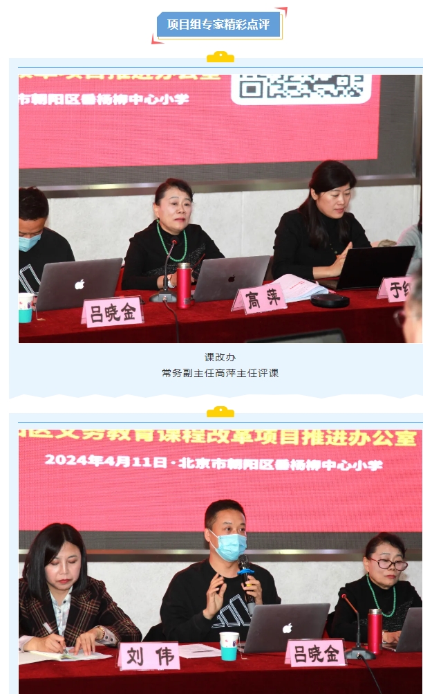 接着是老师们互动研讨及专家点评。参会老师积极发言, 活动的最后部分由朝阳区课改办常务副主任高萍主任,项目特聘专家于红利老师、吕晓金老师分别对两节课例作出点评,同时也对教师们的疑惑给予指导。